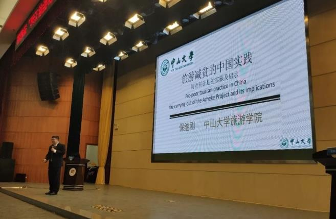 为期三天的论坛围绕着“前沿•创新•教育”的会议主旨和“聚焦于创新:文旅融合与全域旅游发展”的会议主题开展。在隆重的开幕仪式后,保继刚教授进行了主题为《旅游减贫的中国实践—阿者科计划的实施及启示》的会议主旨演讲,围绕着富饶的贫困、旅游减贫理论的推进、阿者科计划的深度解读和实践反哺理论等话题,为大家展示了旅游减贫的阿者科样本,受到与会专家学者们的热烈讨论和一众好评,在问答环节有学者也就阿者科计划的未来与保继刚教授进行了深入的探讨。