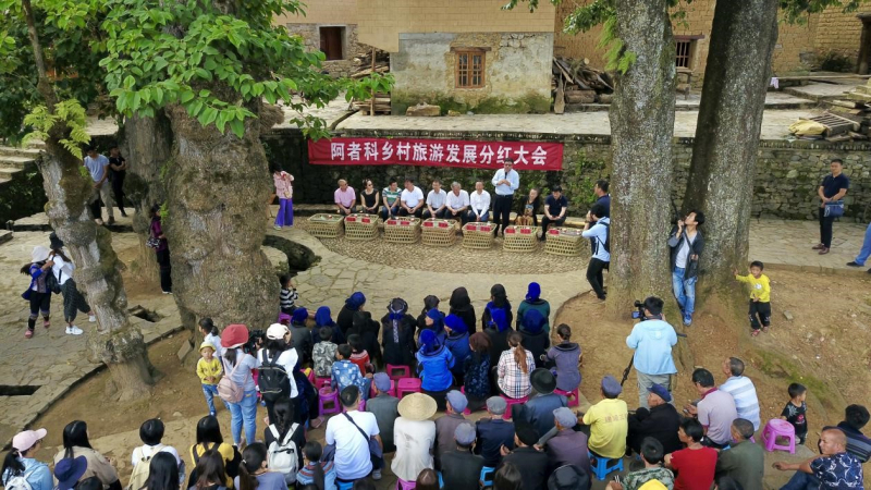 《阿者科计划》作为一个新型的旅游减贫项目,采取内源式村集体企业主导的开发模式,公司组织村民整治村庄,经营旅游接待,公司收入归全村所有。公司通过良好的利益机制引导和调动村民参与旅游的积极性,强化遗产保护的责任意识,实现旅游开发、遗产保护和经济发展协同进步。截止目前,保继刚教授团队已正式进驻阿者科一年,公司制运营6个月,创收40万元,2019年3月举行第一次旅游发展分红大会,每户分红1600元,本次村民直接分红10万元,每户1840元,累计总分红超过19万元。