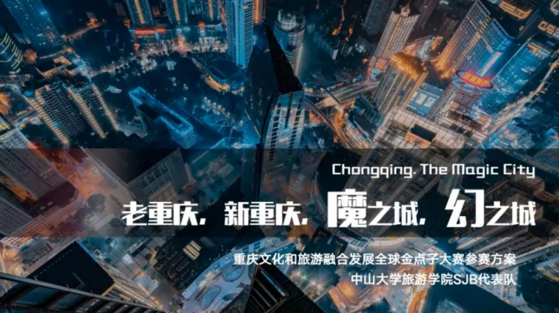 2019年5月,我院刘逸副教授受重庆旅游委邀请,组建中山大学旅游学院旅游管理与规划系SJB代表队,参加“行千里·致广大——发展有你”重庆文旅融合发展全球金点子大赛。本次大赛是由重庆市文化和旅游发展委员会主办的,旨在为重庆文旅发展收集高质量的发展建议,指导重庆市文旅产业更好地融合发展。