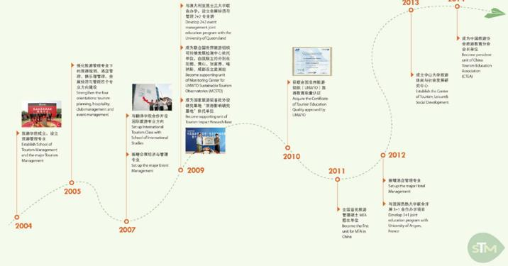 带着老师们的教诲,我们进一步了解了很多旅游学院和旅游管理与规划系的背景知识,例如刘逸老师用直观的图像简洁明了地讲述了旅游学院和旅游管理与规划系2004--2014年的发展历程: