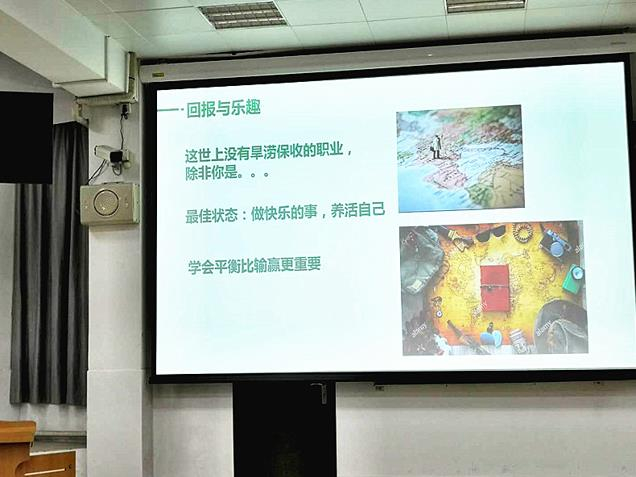 求索道阻且长,但累累硕果足以抹去辛劳。刘老师为同学们详细介绍旅游管理与规划系学子们有着丰富的专业学习成果,如申报科研项目情况、论文发表情况、参与导师科研项目情况等。过往三年,旅游管理专业的毕业生有诸多均升上了世界前两百的名校,国内升学率逐年提高,就业方向多元、前景广阔。而且刘逸老师还分享了一些自己对于职业发展和人生选择的深刻感悟,作为一个“过来人”,跟在座的同学们掏心掏肺,同学们颇受启发。