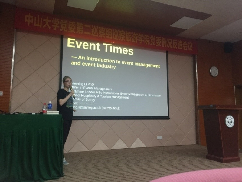 2018年12月26日,中山大学会展与节事大讲堂第3期在旅游学院讲学厅举行。本次大讲堂邀请了我院校友,英国萨里大学酒店与旅游管理学院讲师李艳凝博士。她为我院师生带来了题为“Event time --An introduction to event management and event industry”的主题讲座。本次讲座由会展经济与管理系主任梁增贤副教授主持,学院老师郭云娇博士后、林恬博士后也到场交流。