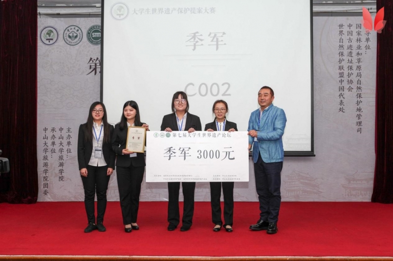 经过评委们客观公正的评选,本次大赛获奖队伍产生,来自暨南大学的追霞者队勇夺桂冠,来自中山大学的世界遗产拯救者队荣获亚军,来自北京师范大学的香如故队获得季军,同时世界遗产拯救者队还获得了最佳人气奖。