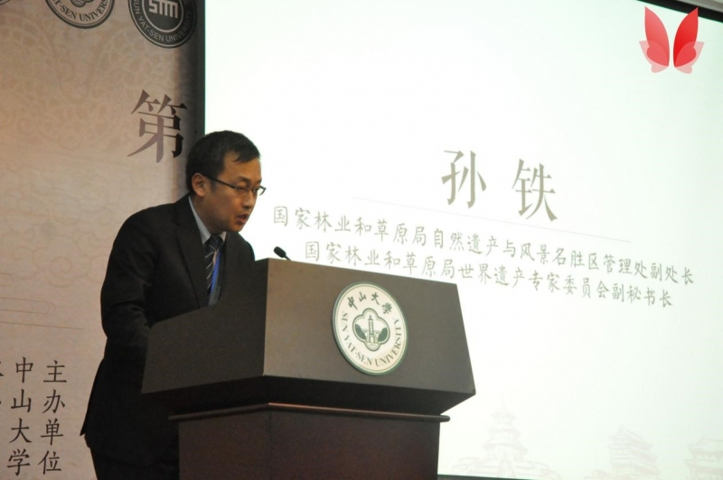 上午,第七届大学生世界遗产论坛在怀士堂拉开帷幕。出席本次论坛的嘉宾有国家林业和草原局自然遗产与风景名胜区管理处副处长孙铁先生、IUCN世界自然保护联盟驻华代表朱春全博士、中国古迹遗址保护协会秘书处主任燕海鸣博士、联合国教科文组织韩国文化项目项目主管金志贤女士、山西大学副校长杭侃教授、北京大学地球与空间科学学院李江海教授、复旦大学文物与博物馆学系杜晓帆教授、北京大学城市与环境学院世界遗产研究中心宋峰副教授、中国地质大学(武汉)旅游系李江敏副教授、韶关市丹霞山管理委员会副主任陈昉女士、鼓浪屿世界文化遗产监测管理中心主任蔡松荣先生、张家界大峡谷景区副总经理陈卓先生、中山大学团委书记王猛书记、中山大学旅游学院院长徐红罡教授、中山大学旅游学院副院长何莽副教授、中山大学旅游学院党委李颢副书记。同时有来自北京大学、复旦大学等全国各大高校的同学参与本次论坛。