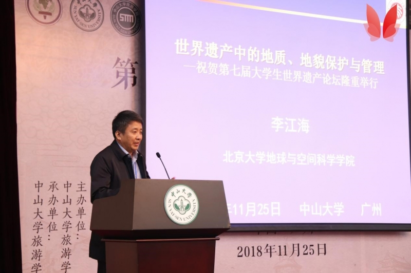 2018年11月25日,第七届大学生世界遗产论坛在中山大学广州校区南校园成功举行。本次活动由国家林业和草原局自然保护地管理司、中国古迹遗址保护协会、世界自然保护联盟中国代表处共同指导,中山大学旅游学院主办,中山大学旅游学院团委承办。本次活动分为世界遗产专家讲堂、大学生世界遗产保护提案大赛和世界遗产跨学科对话三个部分。