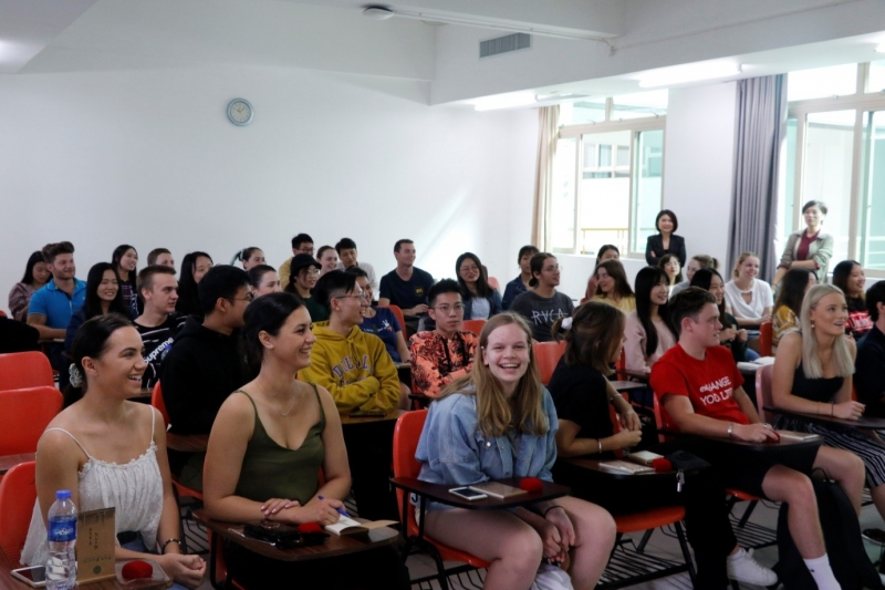 小组讨论后,中方同学带领澳方同学参观珠海校区校园,并品尝学校特色午餐。下午,双方同学回到课室聆听两场主题为会展活动与文化差异的讲座。旅游学院李师娜教授以其在英国主持的项目为例,为两校同学介绍了会议产业经济效益测量方法。格里菲斯大学博士Elaine C.L. Yang从文化角度,讲述旅游产业中的文化差异。讲座现场互动热烈,获得同学们的好评。
