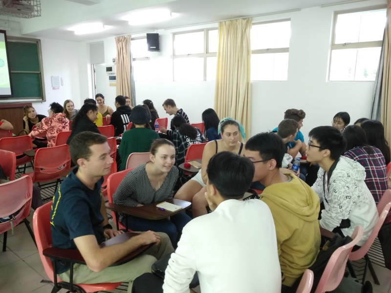 11月30日上午,中山大学和格里菲斯大学跨文化交流活动正式拉开帷幕。有趣的破冰小游戏迅速拉近两校学生的距离。破冰游戏后,双方同学自由组队,进行头脑风暴,为第二天的主题展示做好准备。