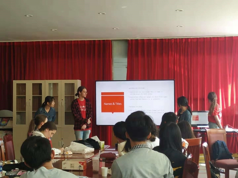 12月1日,两校同学自由准备主题为culture intelligent and communication的小组展示,并于下午进行了长达四个小时的展示。各组围绕中西方或中澳间的文化差异,分享了许多有趣的话题,包括饮食习惯、学习教育、生活方式和共同价值等。本次展示也促发了两校学生对多元文化理解与包容的深入思考。