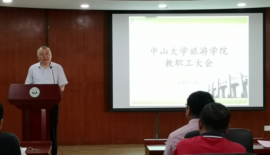 2018年7月28日下午,旅游学院新一届行政领导班子上岗会议召开,中山大学李善民副校长、党委组织部正处级组织员吴长征以及旅游学院教职工出席了会议。会议由旅游学院党委书记林俊洪主持。