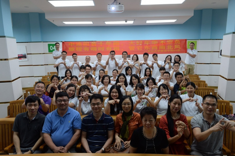 2018年7月14日,中山大学旅游学院2004级校友毕业十周年返校活动于广州南校园熊德龙学生活动中心一楼讲学厅顺利举行。2004级校友近四十人由全国各地返回母校,回首青葱岁月,共叙同窗情谊。旅游学院保继刚教授、彭青教授、徐红罡教授、张朝枝教授、罗秋菊教授、曾国军教授、杨云副教授、刘逸副教授、陈奕滨老师、卓友森老师等作为特邀嘉宾出席了活动。