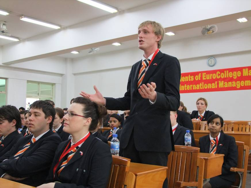 中山大学旅游学院与荷兰EuroCollege Management School en Dutch International Management University的代表先后各自介绍了自己学院的历史、专业等各方面信息,双方均显得兴致勃勃,积极地参与到交流之中。