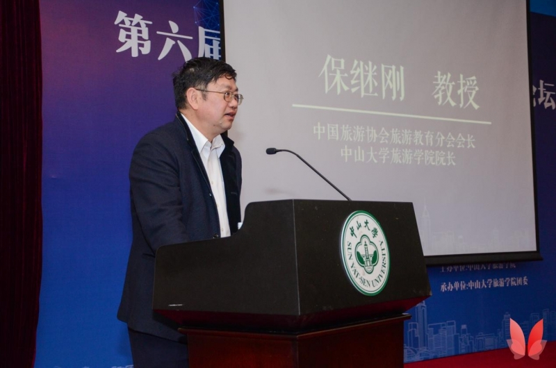 论坛伊始,中国旅游协会旅游教育分会会长、中山大学旅游学院院长保继刚教授致开幕辞。保继刚教授表示,社会资本涌入是遗产旅游新的发展机遇,同时也是一把双刃剑,如何利用社会资本实现遗产可持续发展是一个需要我们思考的问题。保教授的致辞启发与会人员对此问题进行更深层次的思考,表达了希望社会各界与当代青年应该更主动承担责任,为推进遗产保护事业不断努力的愿景。