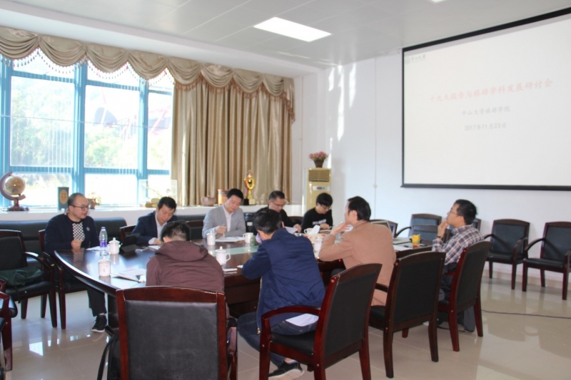 2017年11月23日上午,中山大学旅游学院“十九大与旅游学科发展研讨会”在珠海校区旅游学院108会议室举行。学院党委书记林俊洪主持会议,学院院长助理曾国军教授、院长助理何莽副教授、会展经济与管理系主任张骁鸣副教授、会展经济与管理系副主任赖坤副教授及梁增贤副教授、黎耀奇副教授、张辉副教授、王昭国副研究员等专家教授围绕十九大精神,就旅游学科发展如何面向建设“美丽中国”的国家重大需求进行了深入的研究讨论。林俊洪书记致辞指出,学院师生认真学习宣传贯彻十九大精神,真正“学起来、教起来、传起来、研起来、干起来、实起来”,将十九大精神贯彻到教学科研中,本次研讨会将推进十九大精神更好地指导学科发展及科研方向。