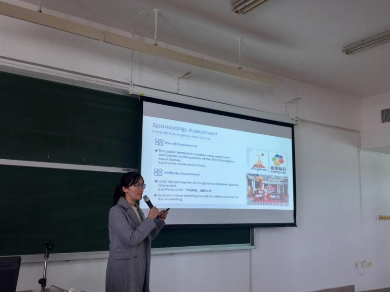 讲座结束后,《大型活动管理》课程的三组同学分别进行报告展示。第一个小组以2010广州亚运会为案例,从赞助活动、志愿者管理、场地遗产和环境管理等四个角度对亚运会进行了活动事件分析;第二组从宣传视频对会展旅游的影响、安保措施、城市内部空间结构、基础设施遗产和环境影响等五个角度探讨了2016杭州G20峰会;第三组则以拉斯维加斯的摇滚音乐马拉松为例,从利益相关者、设计创新、危机管理和社会影响等四个角度对该活动进行了深入的评述。