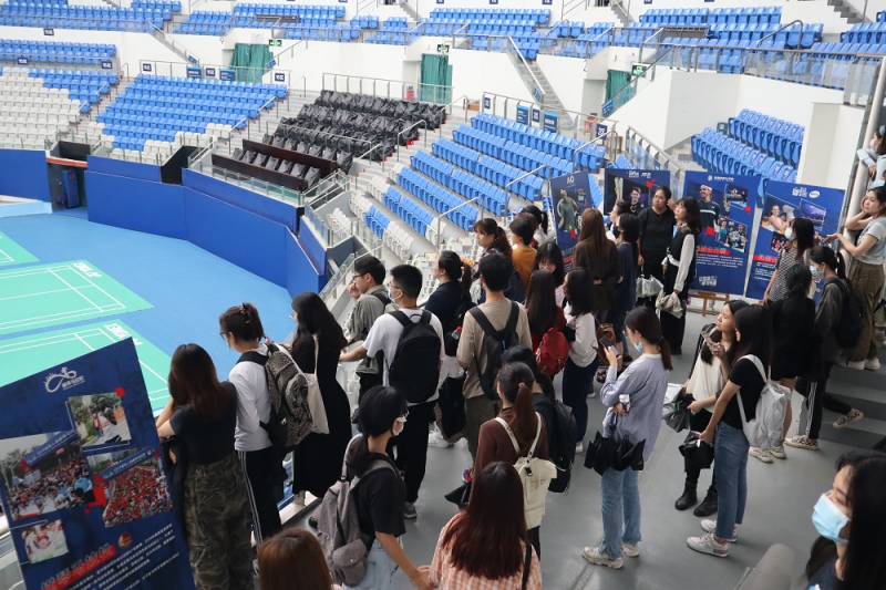 我院师生还来到珠海横琴国际网球中心。网球中心场馆负责人与同学们展开了互动交流。珠海横琴国际网球中心承办了多项大型赛事,如WTA超级精英赛,随着场馆的扩建与各类赛事的增多,它也逐渐成为了珠海的城市地标。同学们在参观网球中心的过程中学习到了赛事运营、场馆建设等的相关知识。
