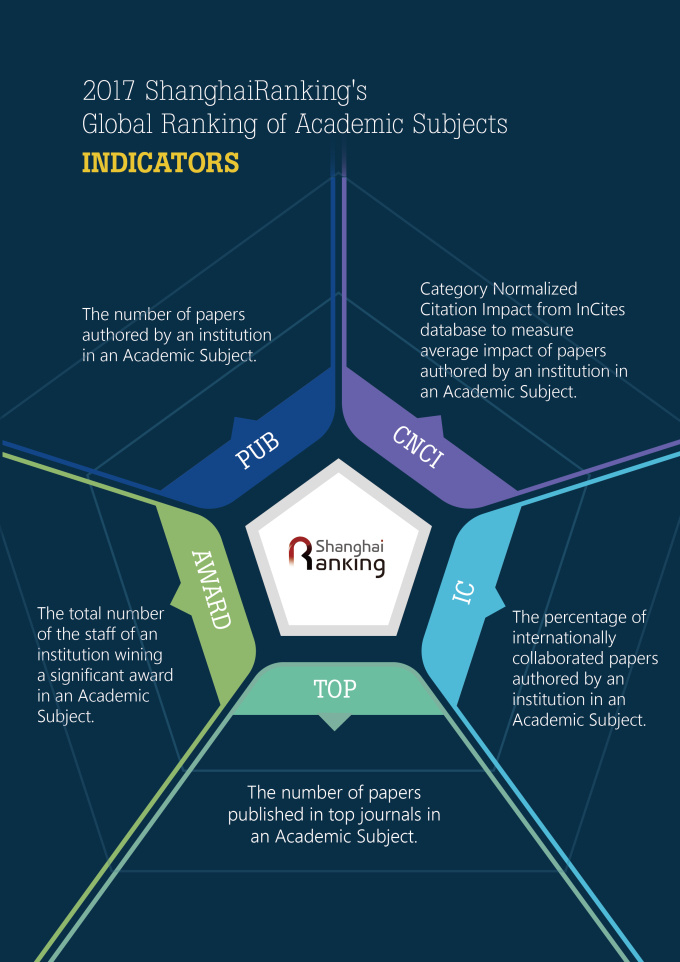 据介绍,“软科世界一流学科排名” 使用一系列国际可比的客观学术指标对全球大学在相关学科的表现进行测量,包括科研规模、科研质量、国际合作、高水平科研成果、国际奖项等。其文献数据来源于科睿唯安(Clarivate Analytics)旗下的Web of Science和InCites数据库。在今年的排名中,软科首次采用“学术卓越调查”(Academic Excellence Survey)得到的27项权威学术奖项和94本学科顶尖期刊作为指标设计的标准。