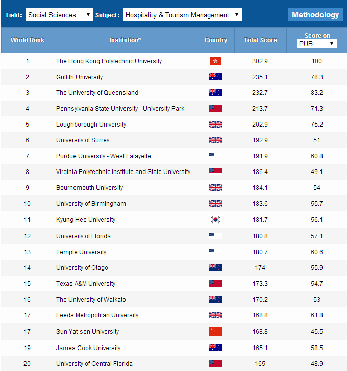 【喜讯】2017软科世界一流学科排名发布,我校旅游休闲管理学科排名世界第17!