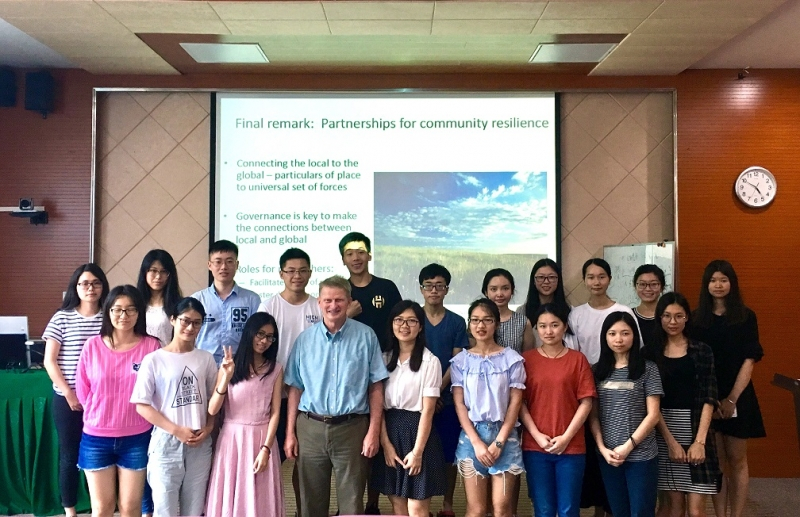 5月23日,William Peter Stewart教授为我院学生作了主题为“Building Rural Community Resilience”的学术讲座,就乡村旅游的社区恢复力问题进行了一场生动、深刻的学术报告。