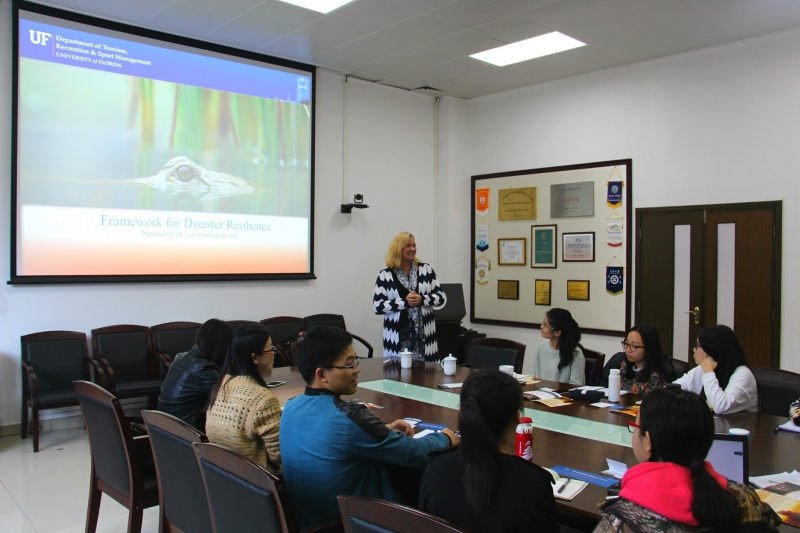 Lori Pennington-Gray教授长期从事旅游危机管理等方面的研究工作, 与联合国世界旅游组织(UNWTO)等国际机构紧密合作,从事多项相关项目的研究和推广。此次Lori Pennington-Gray教授来访我院,一方面旨在与我院洽谈合作,另一方面在我院开展讲学,分享自己在旅游危机管理领域的研究心得。