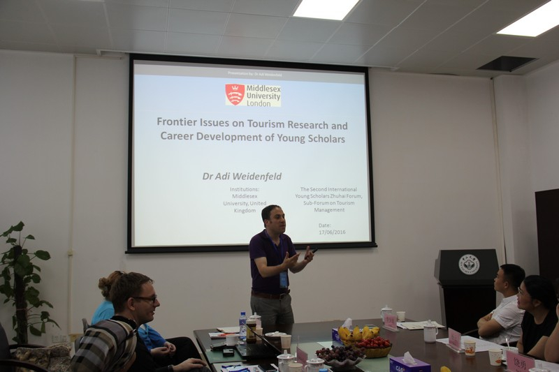 2016年6月18日,“第二届中山大学国际青年学者珠海论坛暨旅游管理分论坛”在中山大学珠海校区旅游学院106会议室顺利召开,本次分论坛的主题为“国内外旅游学术前沿问题交流及青年学者职业路径发展探讨”。来自中国、美国、英国、德国、澳大利亚、希腊、埃及海内外著名高校的7名优秀学者远道而来,齐聚一堂,参加论坛并做了精彩的学术交流报告。旅游学院副院长孙九霞教授、副院长张朝枝教授、酒店与俱乐部管理系系主任饶勇副教授、实践教学主任曾国军教授、彭青教授以及杨云副教授出席了论坛。