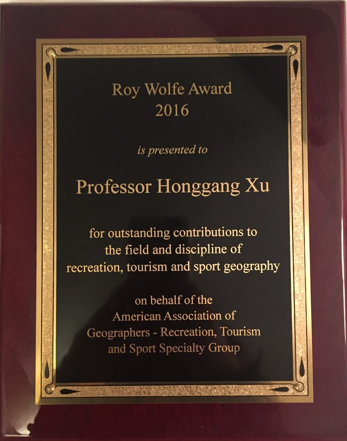 热烈祝贺徐红罡教授获得美国地理学会旅游地理专业委员会颁发的杰出成就奖