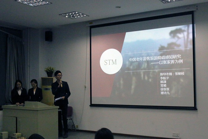 本次会议共有七组研究团队展示其科研成果。各团队以张家界为案例研究地,分别汇报了“基于居民视角的目的地内部品牌化”、“中国自然遗产地遗产价值的有效诠释”、“移动端社交媒体图文话语对张家界形象的表征”、“老年游客旅游障碍感知”、“旅游参与在移民生活差异中的角色”、“张家界旅游产业升级机制”、“山岳型景区自助游客与团队游客旅游空间行为比较”这七个主题的研究成果。五位评委老师对各组的调研过程、研究方法、研究问题等进行了提问,对各组的研究成果进行了针对性点评,并要求各组同学根据老师的意见和建议继续完善各自的研究。