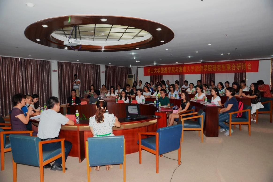9月27日下午,我院研究生到海南大学邵逸夫交流中心第一会议室参加中山大学旅游学院与海南大学旅游学院研究生联合研讨会。大会由海南大学旅游学院孙建军副院长主持,王琳院长致欢迎辞。王琳院长对我院研究生的到来表示感谢与欢迎,并指出此次研讨为两院合作提供了一个新的学术交流平台。