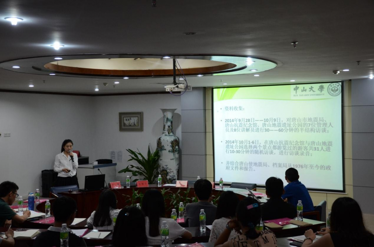 研讨会环节中,我院博士陈胜容作题为“Commemorating The Tangshan Earthquake 1976 In China: Neglected Death At A Dark Heritage Site”的报告,硕士符玉林作题为“旅游地外来经营者地方认同的建构及影响因素研究——以凤凰古城为例”的报告;海南大学旅游学院硕士叶鹏、吴硕丰也分别做了“基于土地利用变化的三亚市生态系统服务价值研究”“Attitude Towards Hong Kong Outbound Tourist Tipping Policy between Tour Escorts and Tour Participants”报告。在座师生针对四位报告者的发言进行互动讨论,现场气氛十分活跃,参与热情度高。