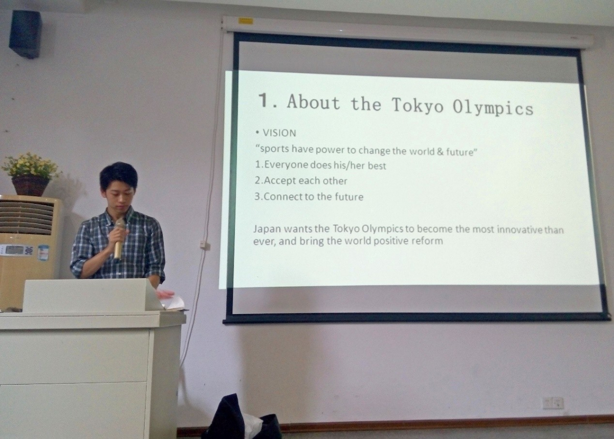 9月11日在珠海校区举行的欢送会中,双方同学就旅游相关的主题进行了讨论,现场师生共同参与讨论环节,日本同学的展示主题为“Tokyo Olympics”,介绍了东京2020年即将举办奥运会的情况,并讨论了其可能为旅游和经济带来的拉动作用以及目前存在的问题,师生针对该发言进行了问答式地互动讨论,现场气氛十分活跃。